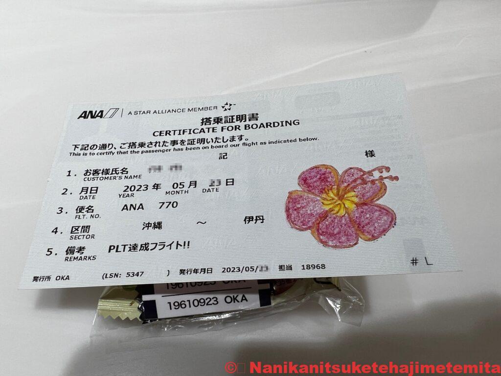 ちゃんと備考欄に「PLT達成フライト」と印字されていますね