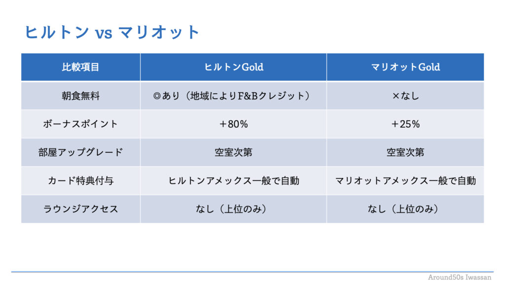 ヒルトン・マリオット・国内ホテルを含めて、わかりやすく比較していきます。