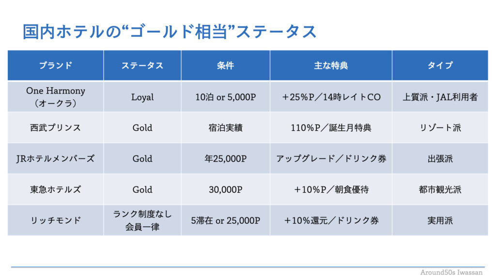 国内ホテルも今、ゴールドステータス競争が加速しています。